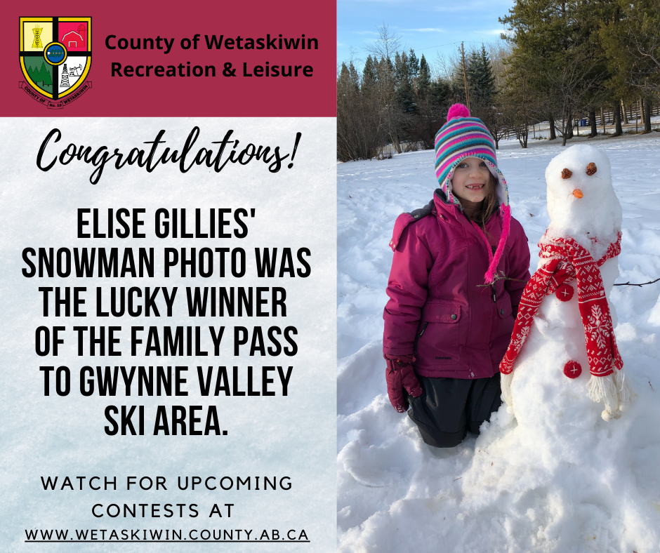 Congratulations to Elise Gillies! Thank you for the great picture of your best snowman.