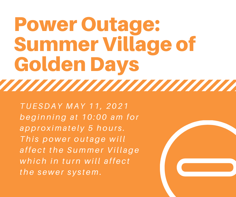 Fortis Alberta requires a power outage to replace poles within the Summer Village. The County of Wetaskiwin requests that residents reduce their use of the sewer system as much as possible during this time (ie: toilet flushing). Once the power is back on, flush toilets to ensure sewer system is working. If there are problems, contact the Utilities Department at 780-352-3321; after hours call 780-352-0005. Thank you for your cooperation.