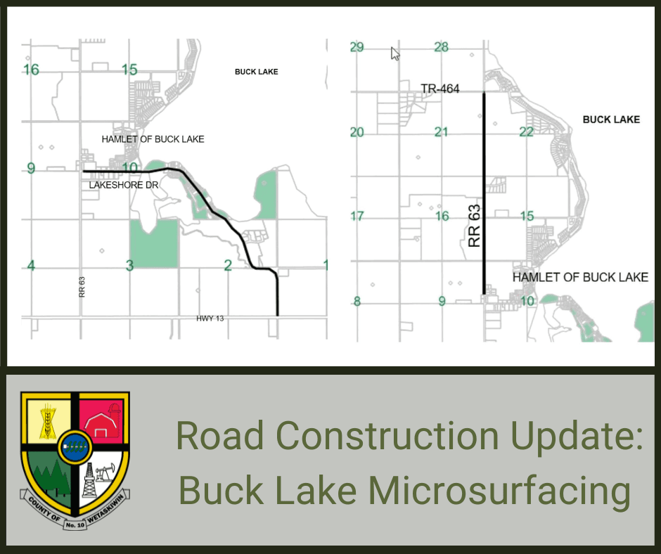 This project for Micro-surfacing Lakeshore Drive in Buck Lake and Range Road 63 north of Buck Lake to Township Road 464. Micro-Surfacing is a treatment designed to extend the service life of asphalt pavements. It is a process where a specialized blend of aggregates and asphalt oil is applied to weathered and worn pavement surfaces to fill in voids within the pavement matrix as well as providing a moisture barrier sealant.