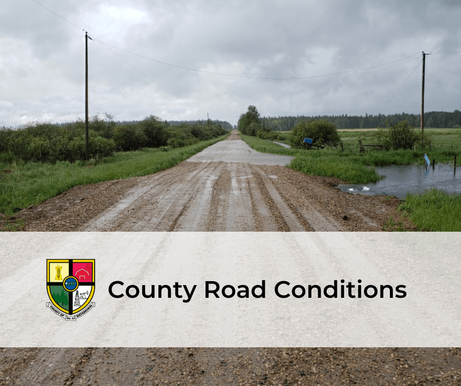 Due to the recent and ongoing heavy rains, County roads may be experiencing high water and flooding. Please drive with caution and to the road conditions. We ask that you report any over land flooding or high water issues to the Public Works Call Centre at 780-361-6241 or email.