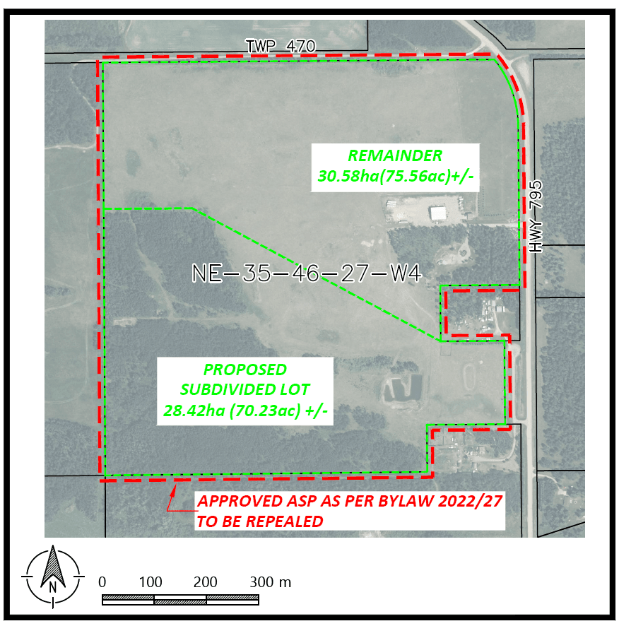 TAKE NOTICE that the Council of the County of Wetaskiwin No. 10 has been asked to repeal an existing Area Structure Plan on the following land, as shown on the accompanying map. NE 35-46-27-W4M