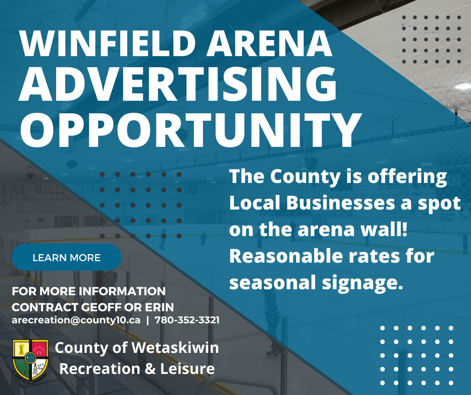 The County is offering Local Businesses a spot on the Winfield Arena wall!