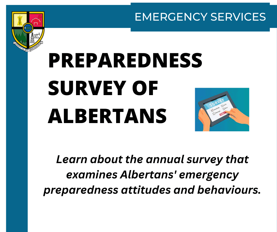 Preparedness SurveyThe annual Preparedness Survey of Albertans measures preparedness knowledge and actions across the province. The results are weighted to reflect age, gender and ethnicity across Alberta.