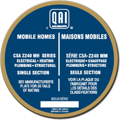 - CSA Certification for all Mobile and Modular Homes,