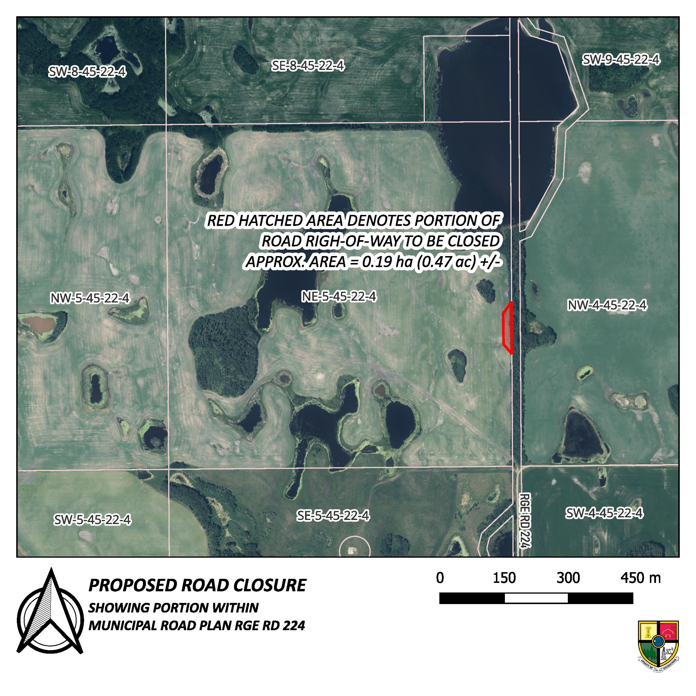 • Bylaw 2024/13 whereby the portion of road allowance on the East side of NE 32-44-22-W4M is to be closed to public travel and sold.12500 map
