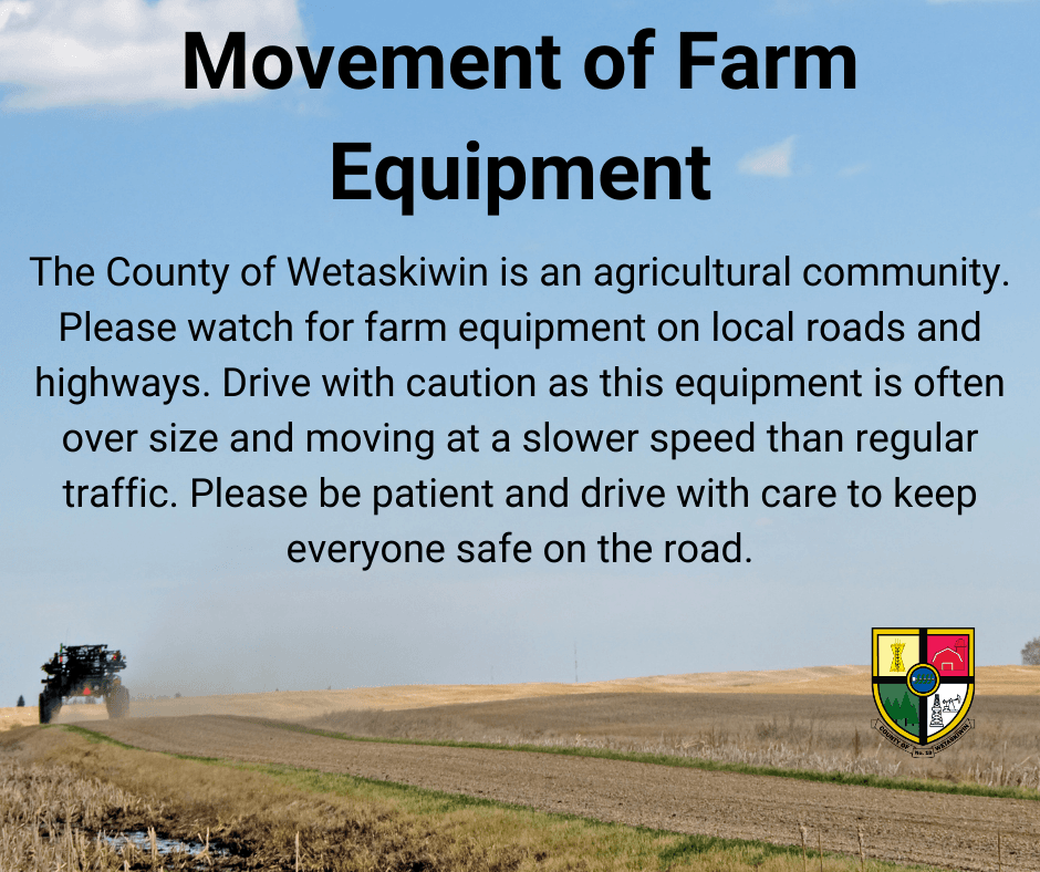 As an agricultural community, it’s common to see farm equipment on our local roads and highways. During this busy season, please be extra cautious while driving.