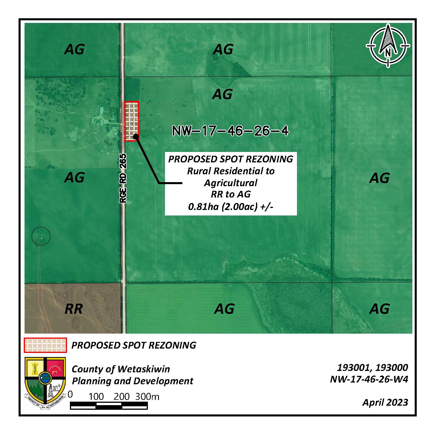 TAKE NOTICE that the Council of the County of Wetaskiwin No. 10 has received an application to amend its Land Use Bylaw by rezoning part of the following land, as shown on accompanying map, from Rural Residential (RR) to Agricultural (AG).