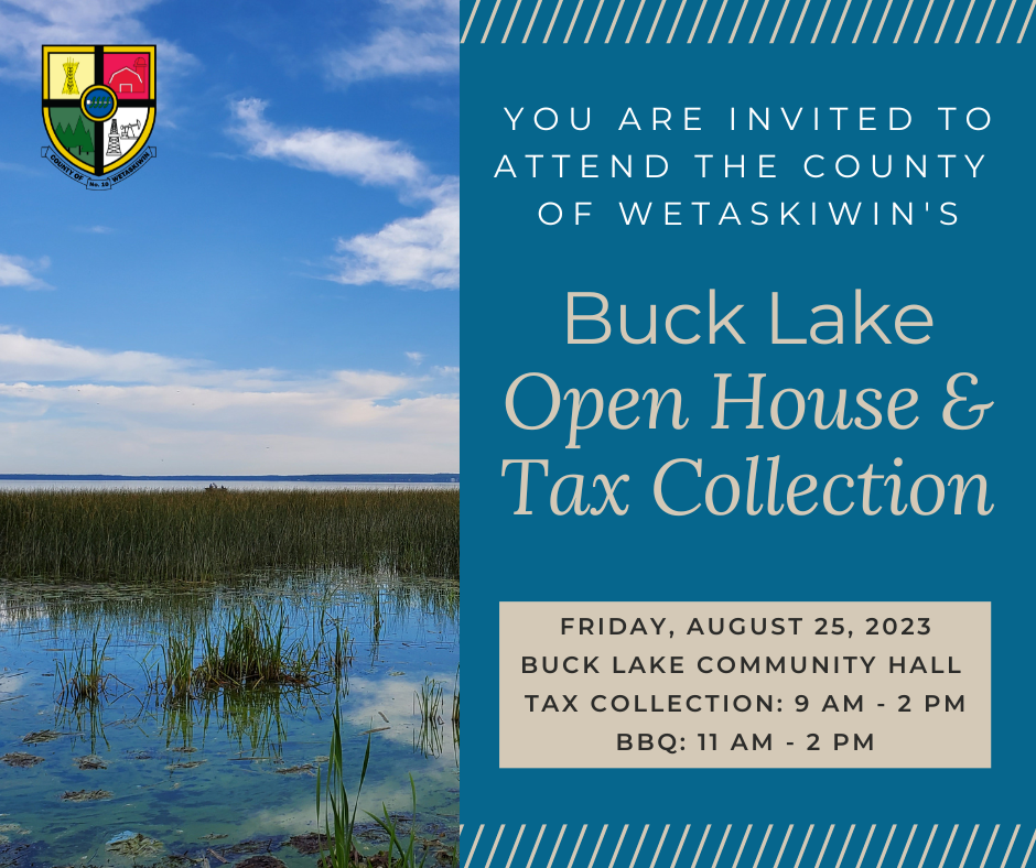 You are invited to attend the County of Wetaskiwin's Buck Lake Open House & Tax Collection.